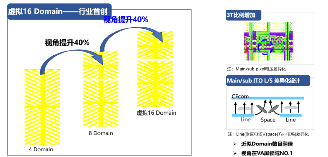 同时,针对VA软屏可视角度的传统短板,TCL技术团队在架构上进行了大刀阔斧的改革,在WHVA 2.0面板上,TCL行业首创了虚拟16 Domain设计(传统为4或8 Domain)。这种复杂的液晶分子排列方式,大大消除了侧视时的色偏和亮度衰减,让这块屏幕在拥有超高对比度的同时,也拥有了更广阔的视角。