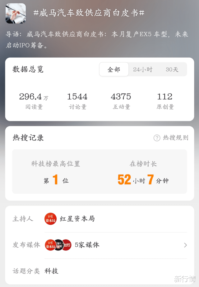 对于威马汽车复活这一消息,网友可谓是炸了锅,直接冲上了微博科技榜第一。