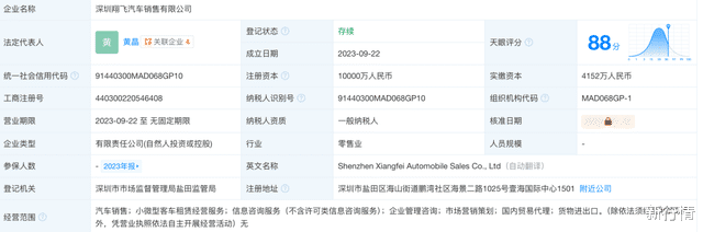 天眼查信息显示,翔飞成立于2023年9月,注册资本1亿元,其法定代表人、实控人黄晶同时担任昆山宝能汽车有限公司实控人。