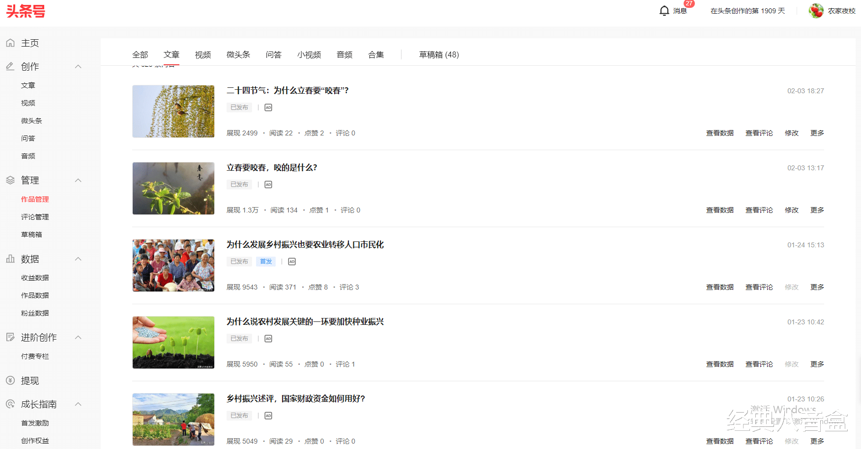 刚刚过去的一年,在流量急速下降,众多的自媒体耕耘者纷纷离场的前提下,我在平台客服反馈下,坚持写,没放弃。按照去年的写作计划,继续撰写三农领域的文章,及时回答广大粉丝的关切,把三农领域的热点、难点做了解释,写了一些这方面的文稿,在一定程度上满足了大家的需求,解答了部分疑问。