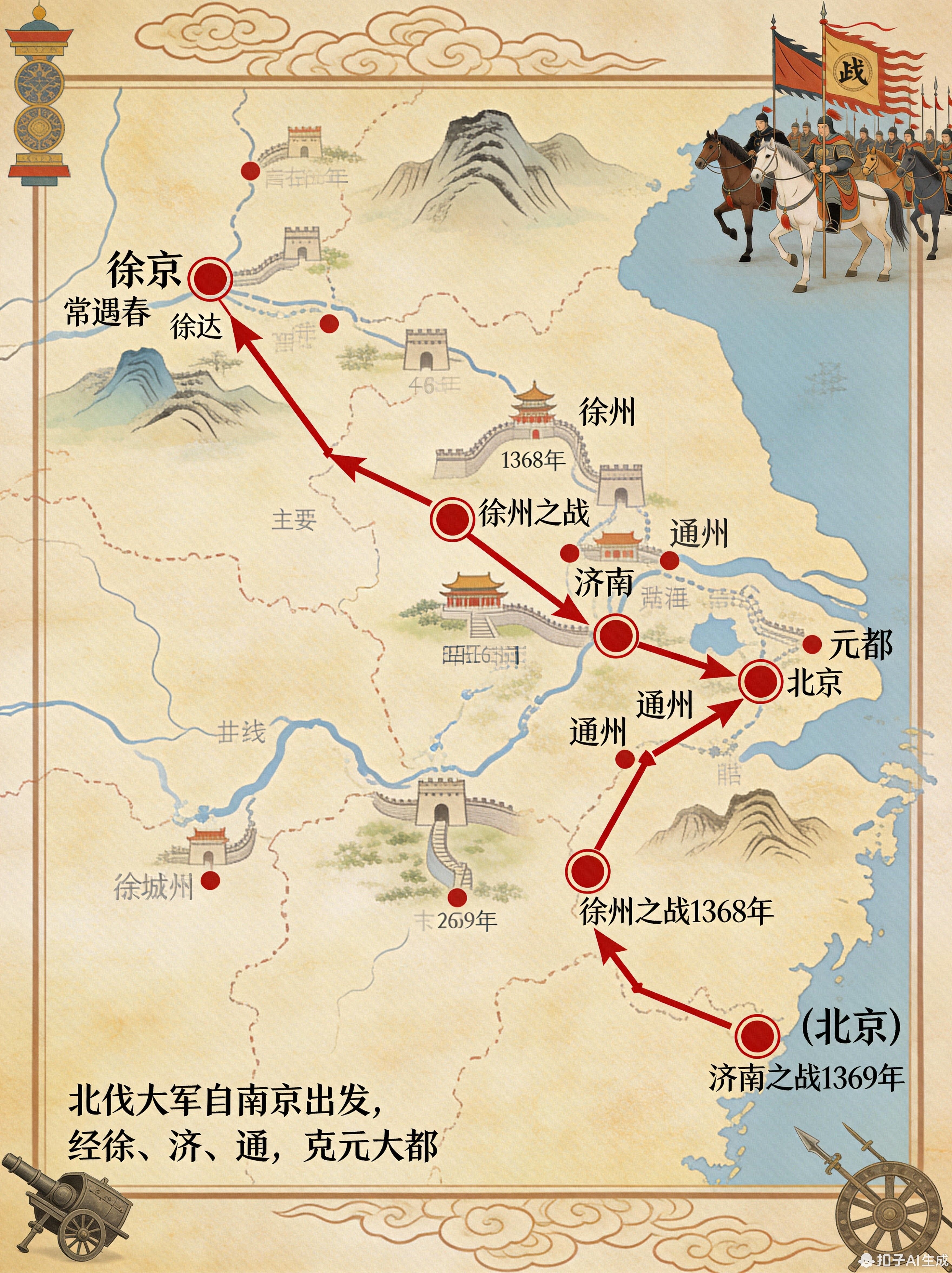 而1367年制定的北伐计划,更是堪称冷兵器时代的战略典范。他没采纳常遇春“直接攻打大都”的冒险方案,而是提出了三步走:先打山东,清除屏障;再取河南,切断支援;最后拿下潼关,守住门户。明军按这个计划推进,只用十个月就攻破元大都,结束了元朝统治。这种“步步为营、稳扎稳打”的思路,和他早年“缓称王”的忍耐是一脉相承的。