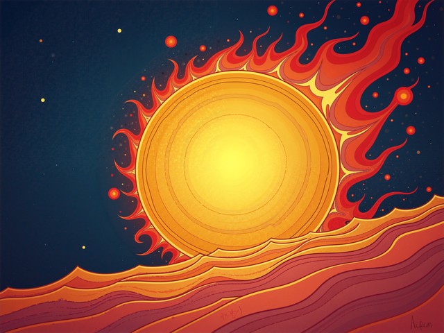 一个很奇怪的人,头顶尖尖,顶着太阳,身处群星之间!