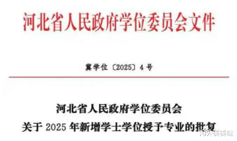 近日,河北省人民政府学位委员会发布《河北省人民政府学位委员会关于2025年新增学士学位授予专业的批复》,我校法学、应用统计学、机器人工程、戏剧影视导演等4个全日制本科专业,汉语言文学和口腔医学技术等2个高等学历继续教育专业学士学位授权审批均已通过。