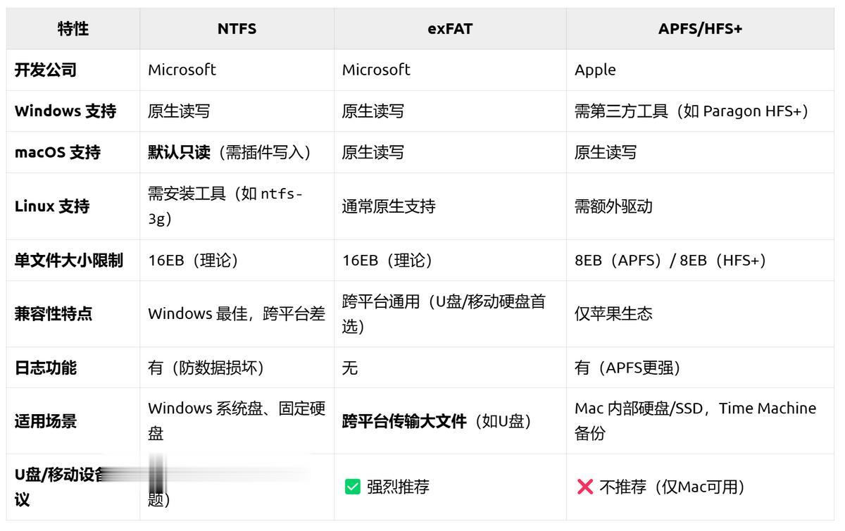 APFS/HFS+:苹果自家文件系统,只能在Mac系统上用,不建议 U 盘使用。