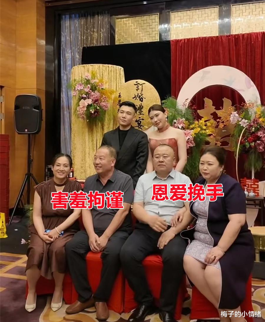 从两家人的打扮来看,都属于那种体面正派的人家,女方一家人身材明显更魁梧一些,但性格也更外向一些。男方一家人一看就是那种比较老实含蓄的类型,不仅父母比较内敛,新郎也随了父母全程表现高冷。