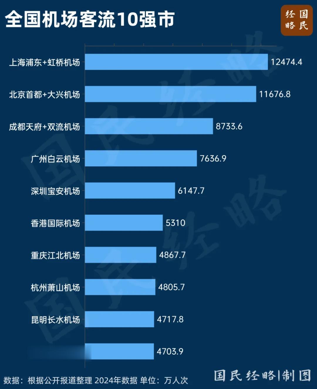 作为全国三大“双机场”城市之一,上海坐拥浦东、虹桥两大国际机场,航空旅客吞吐量合计达1.24亿人次。