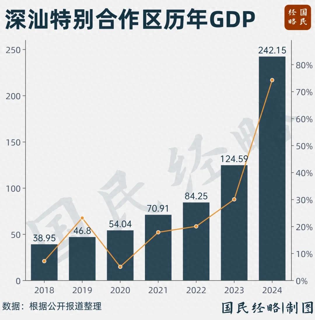 自2018年底正式纳入深圳统一管理以来,深汕合作区GDP总量从39亿大增到242亿,规上工业总产值从不足50亿飙升到700亿元以上,6年时间再造N个“深汕”。