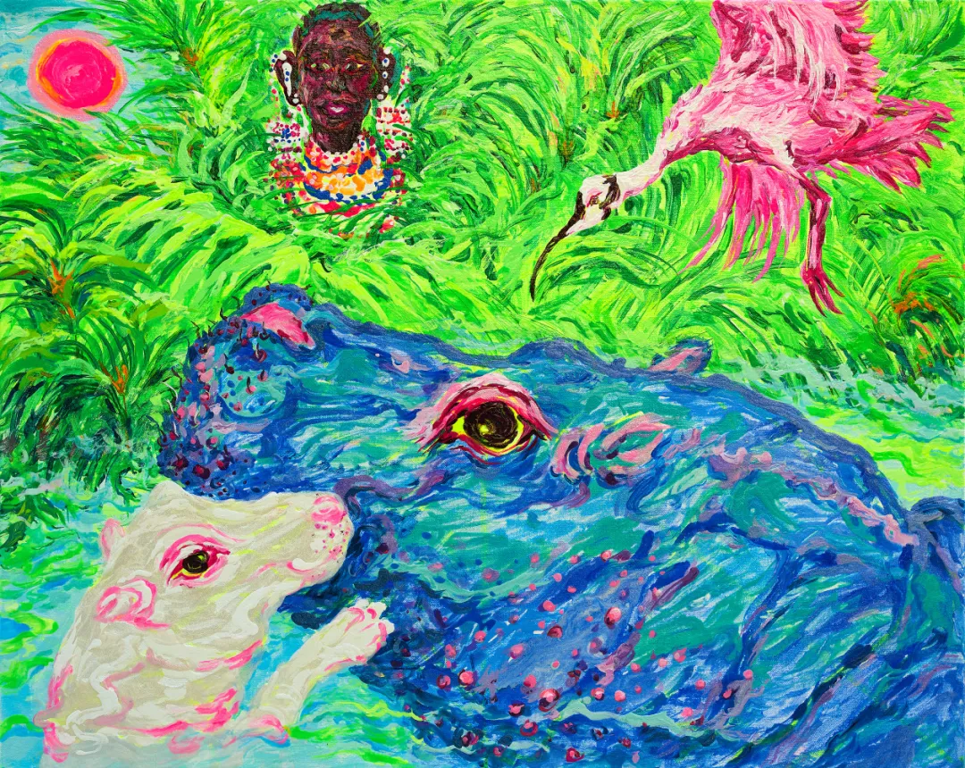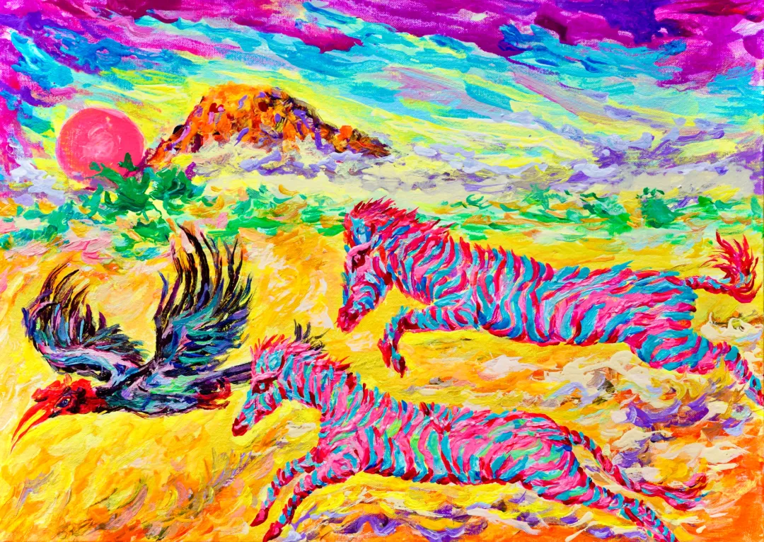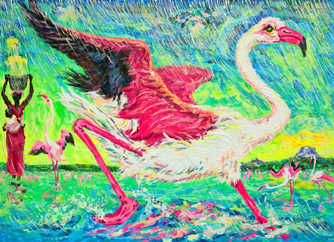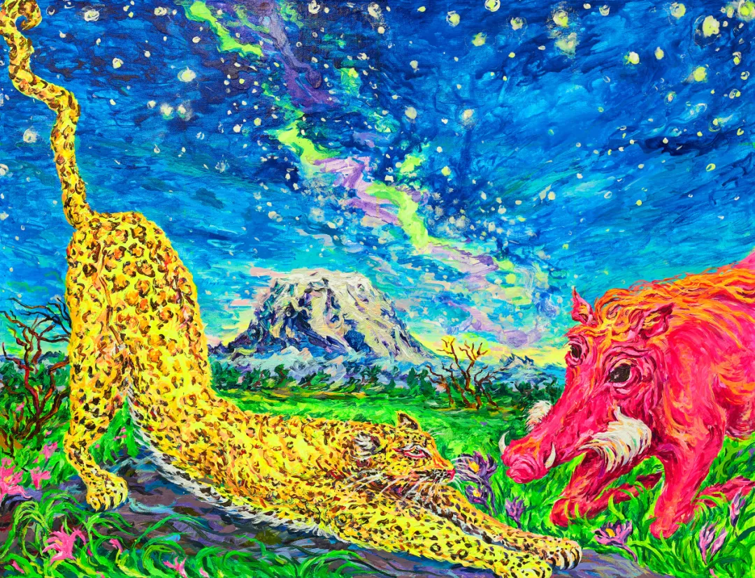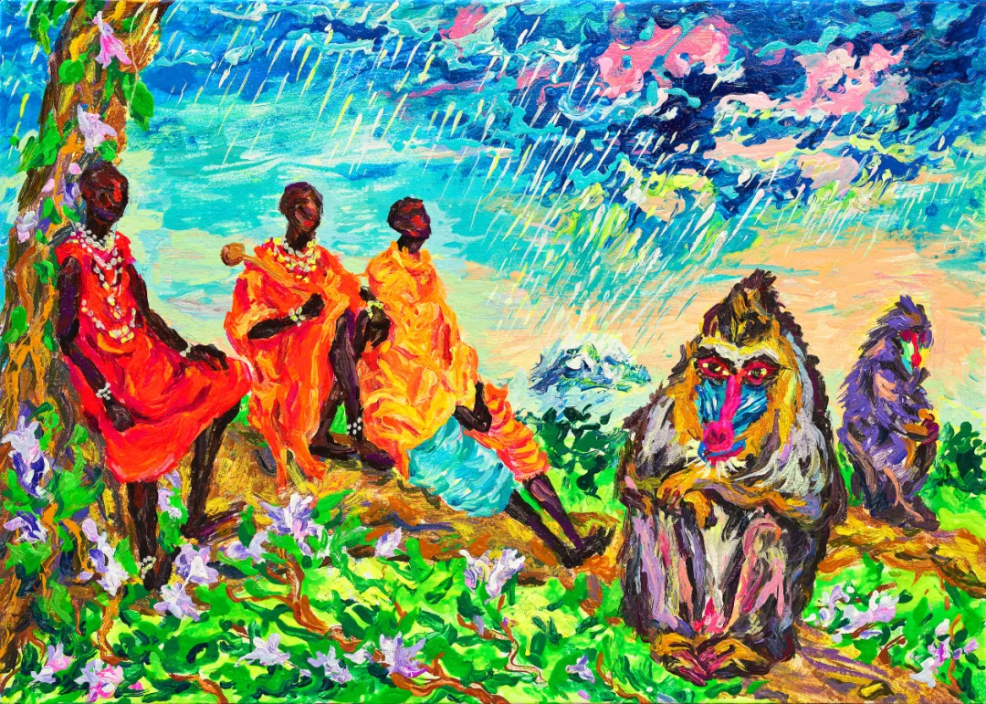 《自由与爱——乞力马扎罗山下的故事》布面丙烯80×110cm 2023