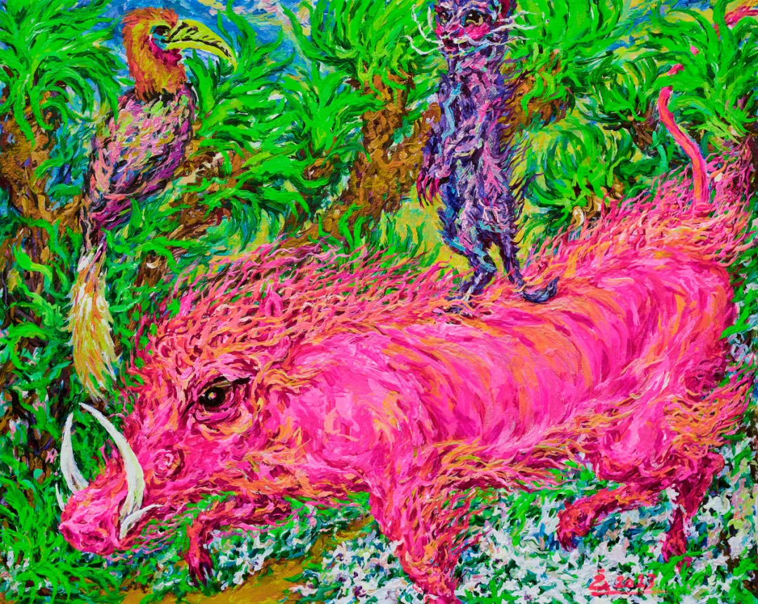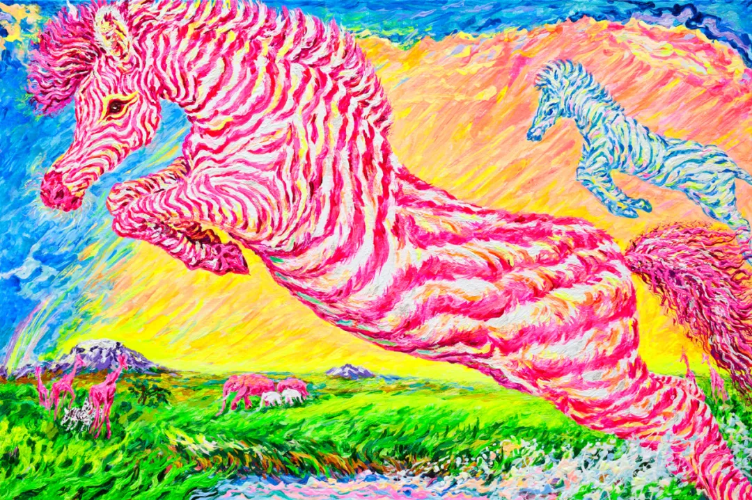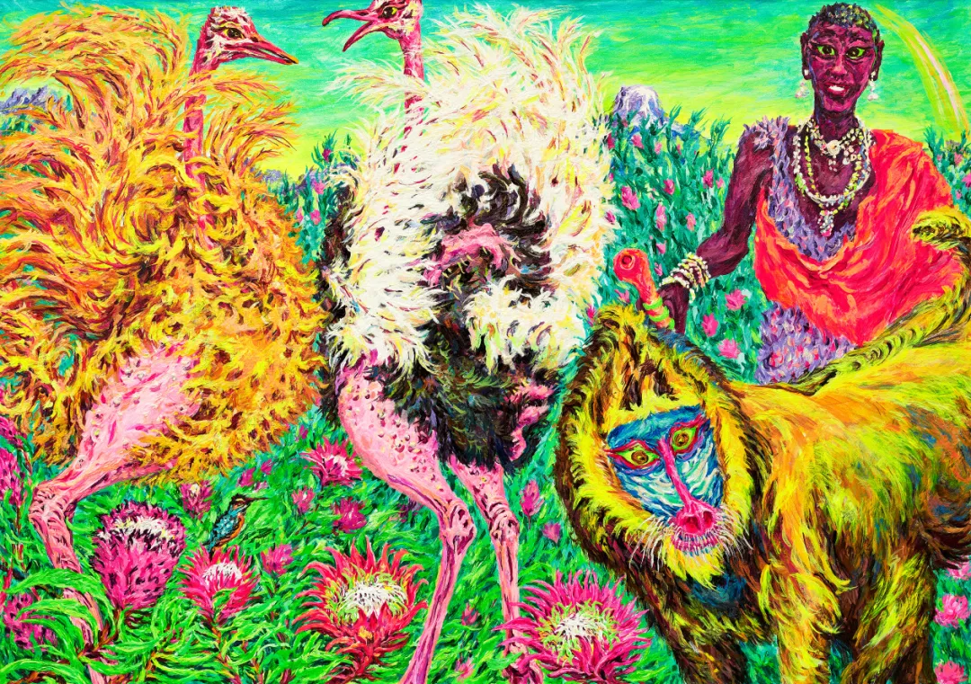 《自由与爱——帝王花下的共生》布面丙烯120×170cm 2024