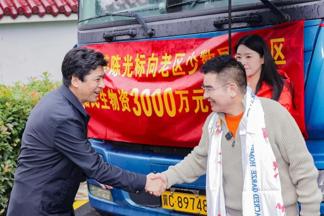 陈光标在发车仪式上表示:“革命老区曾为民族独立和国家建设作出卓越贡献,少数民族地区在教育、医疗等民生领域仍面临发展不平衡的现实挑战,这两类地区的发展始终是我牵挂的重点。希望这些物资能切实解决当地群众的急难愁盼,让公益的温暖真正抵达基层。”
