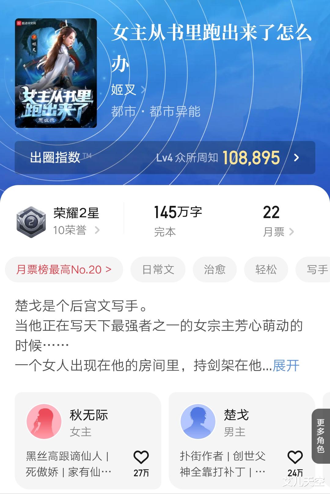 当然如果你不喜欢看后宫文,也可以看看姬叉的上本用马甲写的单女主文《女主从书里跑出来了怎么办》,前期写的还是颇有意思的。