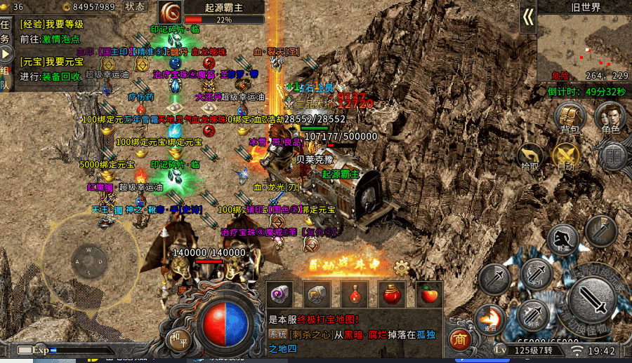 打宝是传奇的核心乐趣,这款游戏直接把爆率与收益拉到极致。所有地图无专属掉落套路,普通怪、精英怪、BOSS都有概率爆神装,掉落还有1分钟保护期,平民也能轻松捡漏。三大陆“雪域魔王”保底掉落8转紫装,昆仑BOSS每日10/16/22点准时刷新,必爆三重天书+鸿蒙装备;“金色元宝怪”单只最高掉落5万元宝,1小时稳定收入200万+,装备回收比例高达170%,10转装备回收就能换50万元宝。土城摆摊区支持自由交易,多余灵符收购材料再转手,30%差价轻松赚,打宝不仅能变强,更能实现“游戏搬砖自由”。