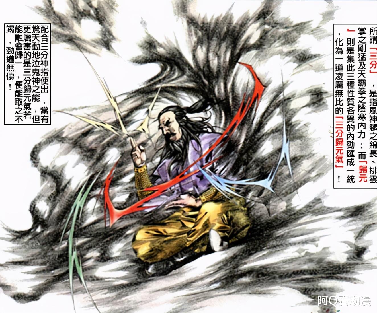 在《风云》第一部中,雄霸的武功“风神腿”、“天霜拳”、“排云掌”合称“三分归元气”,乃是当时武林中最顶尖的内功体系之一。漫画中明确提到,风神腿速度可超越光速,天霜拳练至极致能冻结空间,排云掌则刚猛无俦,三者融合后形成攻防一体的完美武学结构。这并非夸张设定,而是剧情中多次展现其实战威力的体现。