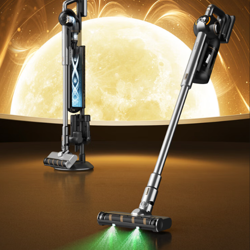 无线吸尘器十大品牌哪个牌子好?苏泊尔C36暗黑配色加上金属质感机身,线条也比较利落。它比较有辨识度的是曲面智能旋转屏,机器当前状态能直观看到,用的时候不会有电量焦虑。地刷前端带双绿光显尘,床底、沙发底这种光线差的位置,灰尘和毛发会更容易被发现,可以避免打扫时漏掉哪里没打扫到,清洁效率提升不少。