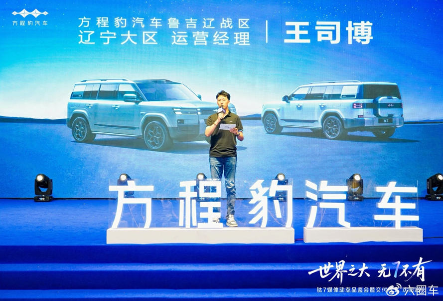 活动伊始,主持人以饱满的情绪引领嘉宾进入“钛度”时刻,随后方程豹汽车鲁吉辽战区辽宁大区运营经理 王司博登台致辞,从品牌发展、产品理念等角度解读钛7的诞生背景。他强调,“钛”系列是品牌对自由生活方式的探索,是对个性表达的尊重,也是对“如何让生活更美好”的真诚回应,而钛7是方程豹悦己宜家精神的集大成者,是一台不委屈自己的车,不辜负家人的车;不满足够用的车,不泯然众人的车!这一段掷地有声的发言,让嘉宾们感受到了方程豹以用户为出发点的品牌理念与行动力。