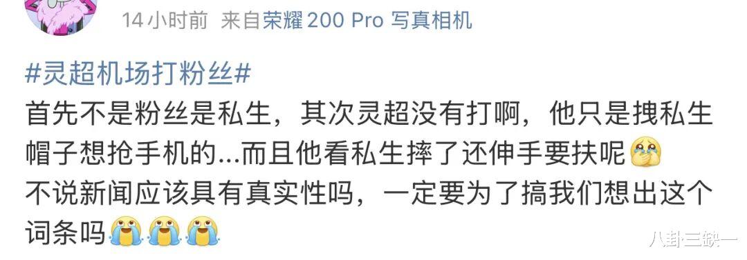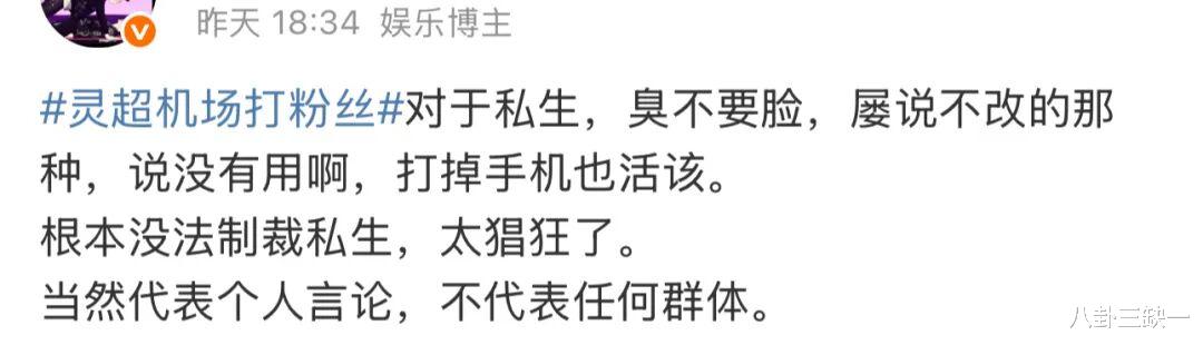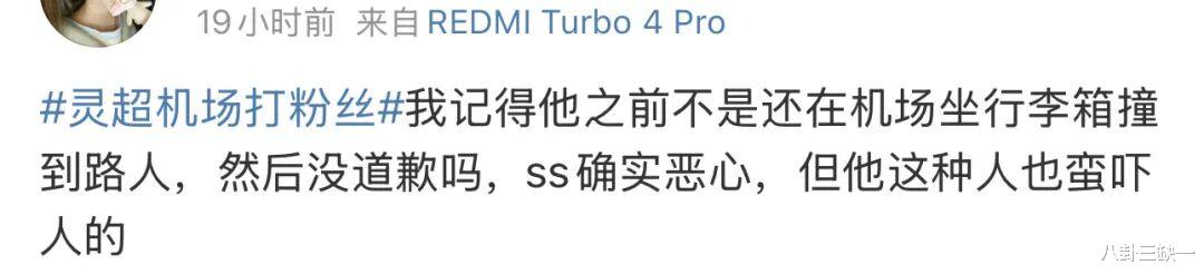 确实,这些未加剪辑、充满原始冲突感的片段,拥有“一帧胜千言”的粗暴说服力,一下子就激起了网友的正义感和审判欲。加上灵超在应对私生时,本就多次展现过颇为“刚硬”甚至“鲁莽”的一面,比如在机场直接爆发,一把薅过私生的手机丢在地上;