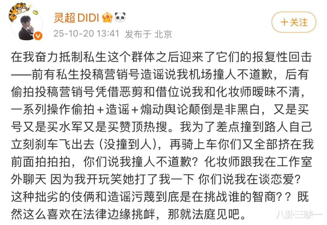 灵超更是长期面临家人被私生骚扰的困境,私生不仅会尾随他的家人出行,还会在网上编造各类谣言,恶意牵连其亲友。这些人的跟踪毫无底线,日常出行时会举着长焦镜头近距离怼脸拍,甚至在高铁站、机场一路围堵,完全不给艺人喘息空间;