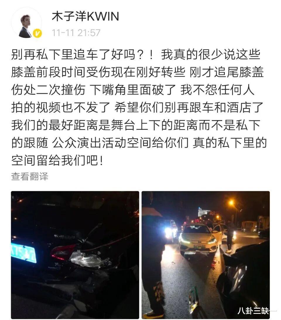 一边火力全开,对外疯狂科普ONER家私生那些能拍成恐怖片的骚操作,桩桩件件都触目惊心。2020年11月,成员木子洋、灵超及随行助理乘车出行时,遭到私生疯狂跟车,最终引发追尾事故,车辆后车灯被撞坏、玻璃直接掉了下来,本就因跳舞受伤刚好转的木子洋膝盖二次撞伤,下嘴角也磕破出血,而肇事的私生饭却当场逃离现场,毫无悔意;