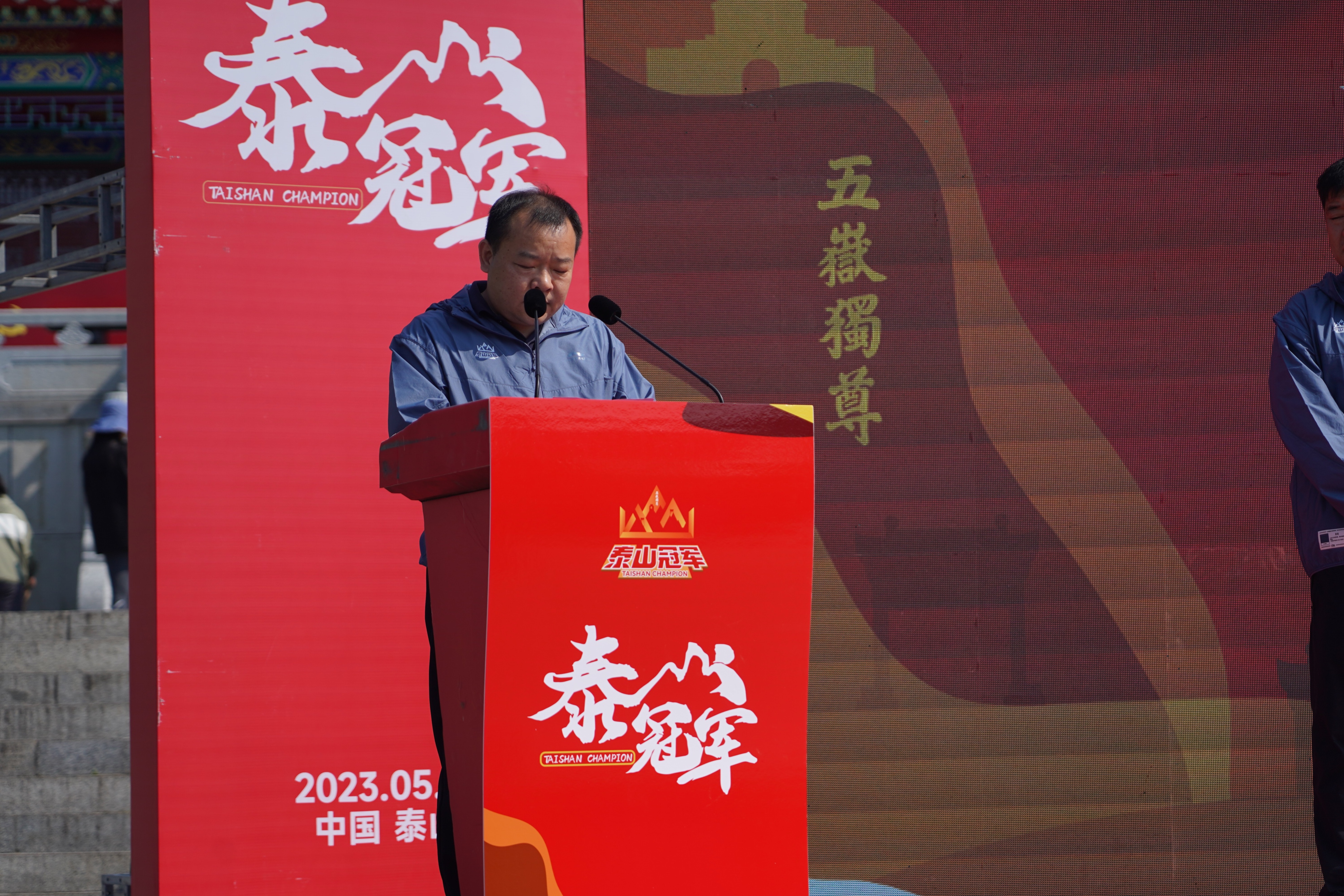 仪式上,山东泰山旅游集团党委委员、监事会主席张俊敏对“泰山冠军”系列赛事活动IP进行了发布。他指出,“泰山不拒细壤,故能成其高”、“登临中华泰山、成就冠军梦想”。我们将以“泰山冠军”为纽带,搭建面向知名品牌企业和社会各界的体育活动合作平台,开放赛事合作,开展活动交流,相互宣传推广,共享场景展示。我们也期待广结泰山缘,共商泰山计,通过建立战略合作关系,开展冠名活动、特许商品开发、专营合作等方式赋能企业发展,发挥泰山资源价值优势,开创文旅体商融合发展的消费新场景。发挥赛事活动品牌推广效应,促进行业相关上下游产业、高附加值产业发展,助力区域经济发展。“稳如泰山、重于泰山”是泰山在五千年中华文明中亘古不变的文化坐标和定位,也是“泰山冠军”对自身发展目标追求的承诺和誓言。“登高望远、奋力争先”,是新时代赋予我们的责任与担当,也是“泰山冠军”对新时代的回应与祝愿!