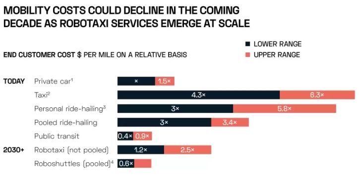第三,更关键的是,特斯拉构建了独特的商业闭环——私人拥有的自动驾驶车辆可接入运营网络为车主创收,将消费者转化为生态参与者,彻底重构汽车价值链条。马斯克激进预测:到2027年,Robotaxi业务收入将超过整车销售。这一预期建立在每英里40美分的运营成本模型上,显著低于当前行业平均的1.34美元。