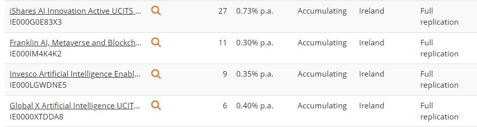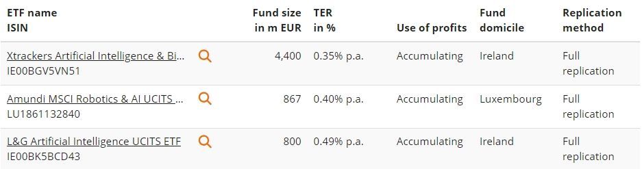 以下是一些市面上热门的人工智能ETF产品,仅作举例,不作推荐建议: