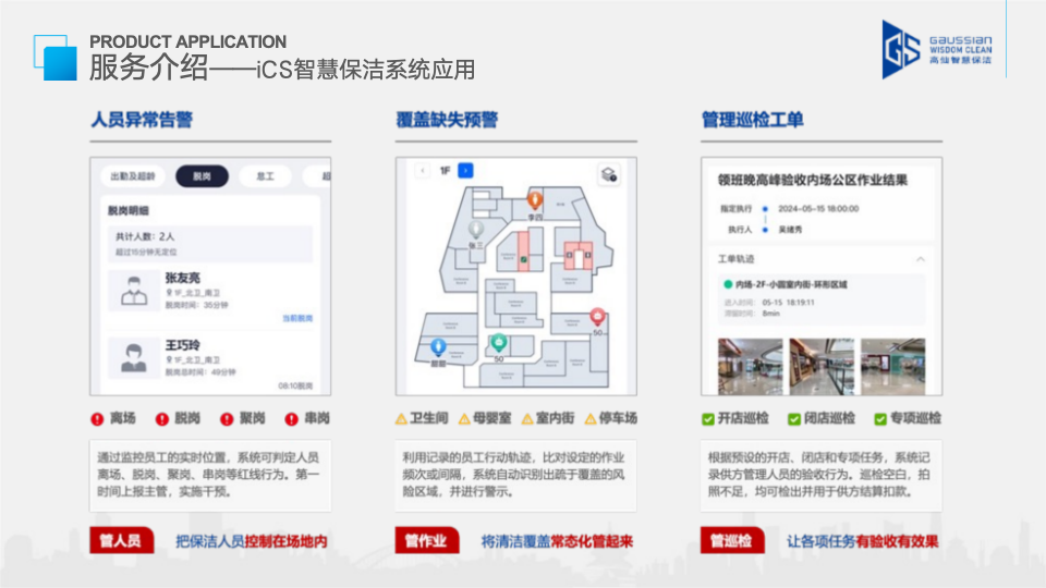 面对这些行业共性难题,智慧保洁系统给出了创新的回答。通过机器人自动作业与iCS系统智能调度,实现了保洁工作的全程可视化管控。机器人可承担80%以上的大面积重复性清洁工作,并能实现24小时不间断作业,使地库清洁频次从每月一次提升至每周一次,大堂等区域甚至可实现每日2-3次清洁。与此同时,该系统还能通过数据分析,智能生成巡检工单,对洗手间、母婴室等重点区域进行全覆盖管理。