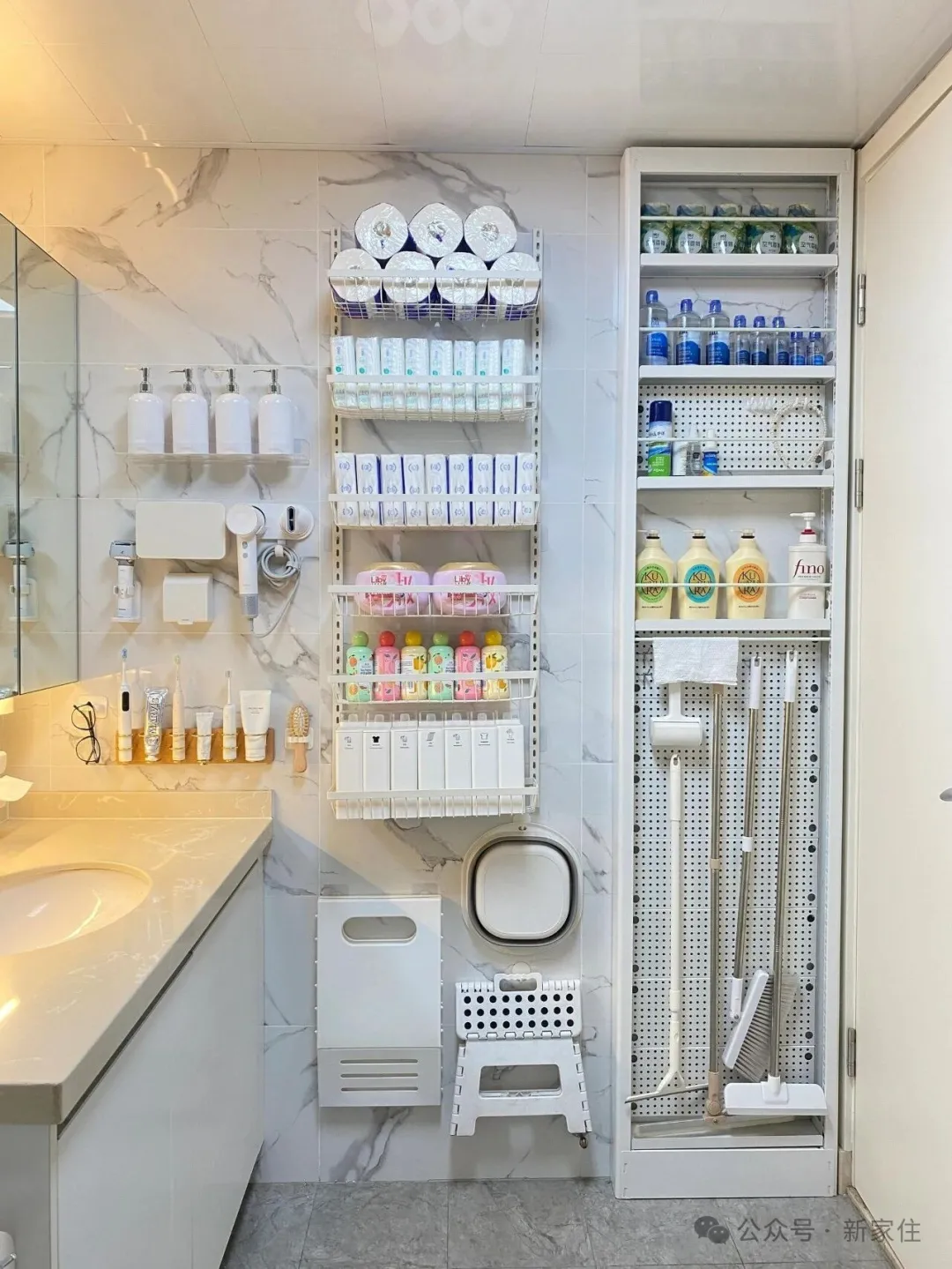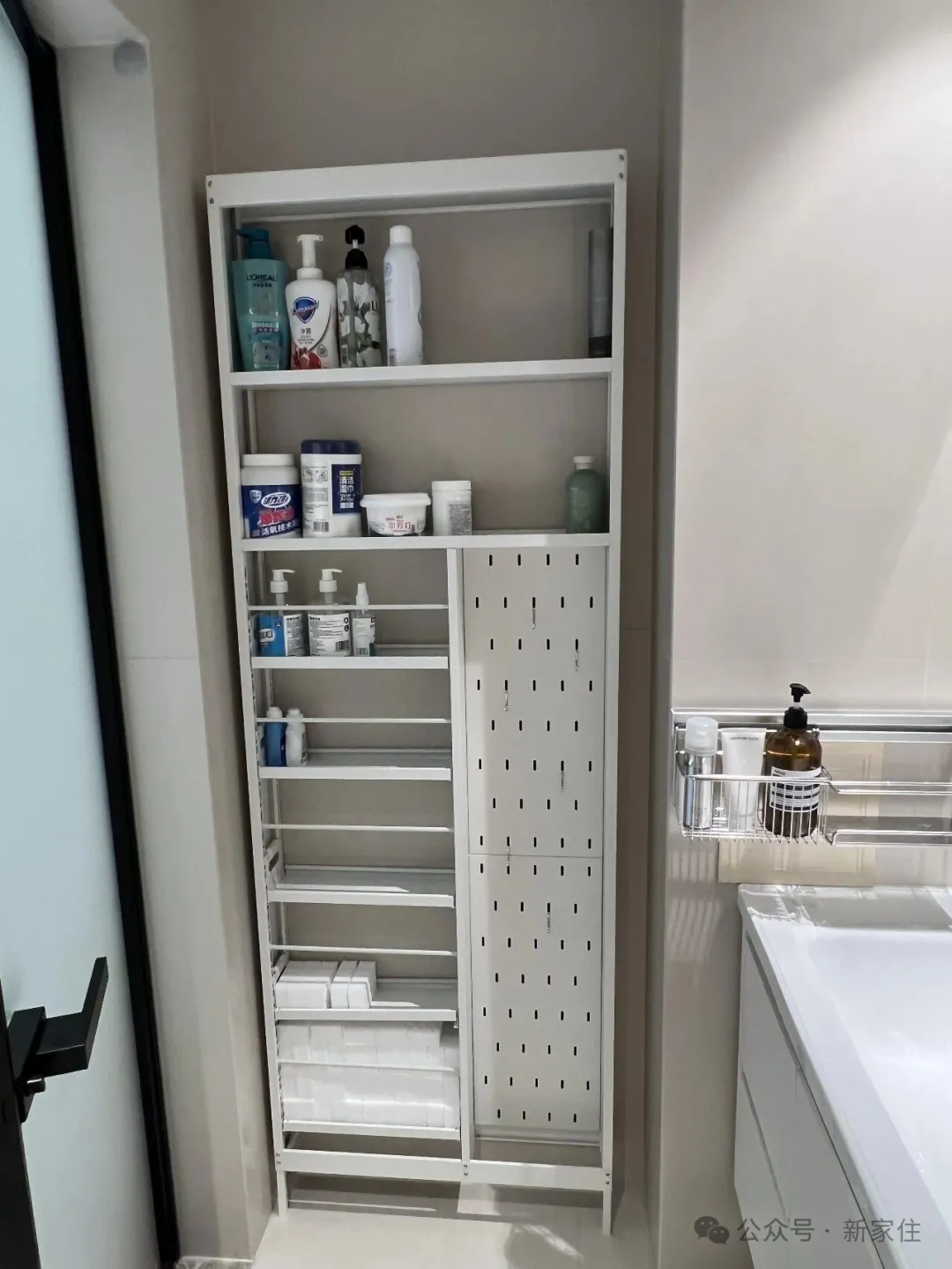 厚度只需要10cm,放在卫生间门后面刚刚好,清洁工具、洗护用品可以随手放置,另外有宝宝的可以放纸巾尿不湿等,别提多方便了。这才是真正的夹缝里求生存!