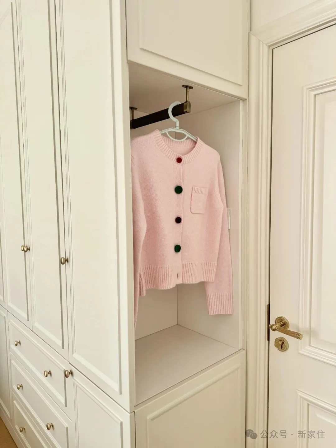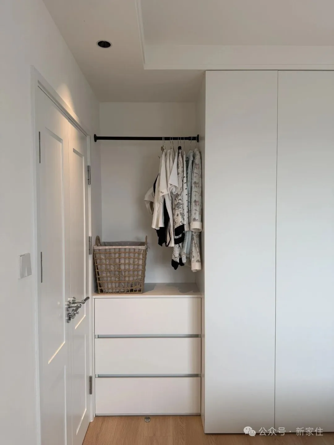 如果你家卧室门后面无法做次净衣区,也可以放在衣柜侧面。合理区分,从此告别衣服乱丢的毛病!