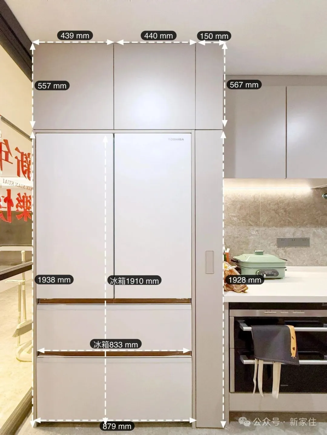 家里的冰箱,和橱柜之间都会有个缝隙,就算你做了内嵌冰箱,为了保证开门顺畅和散热,也要提前预留出空间!