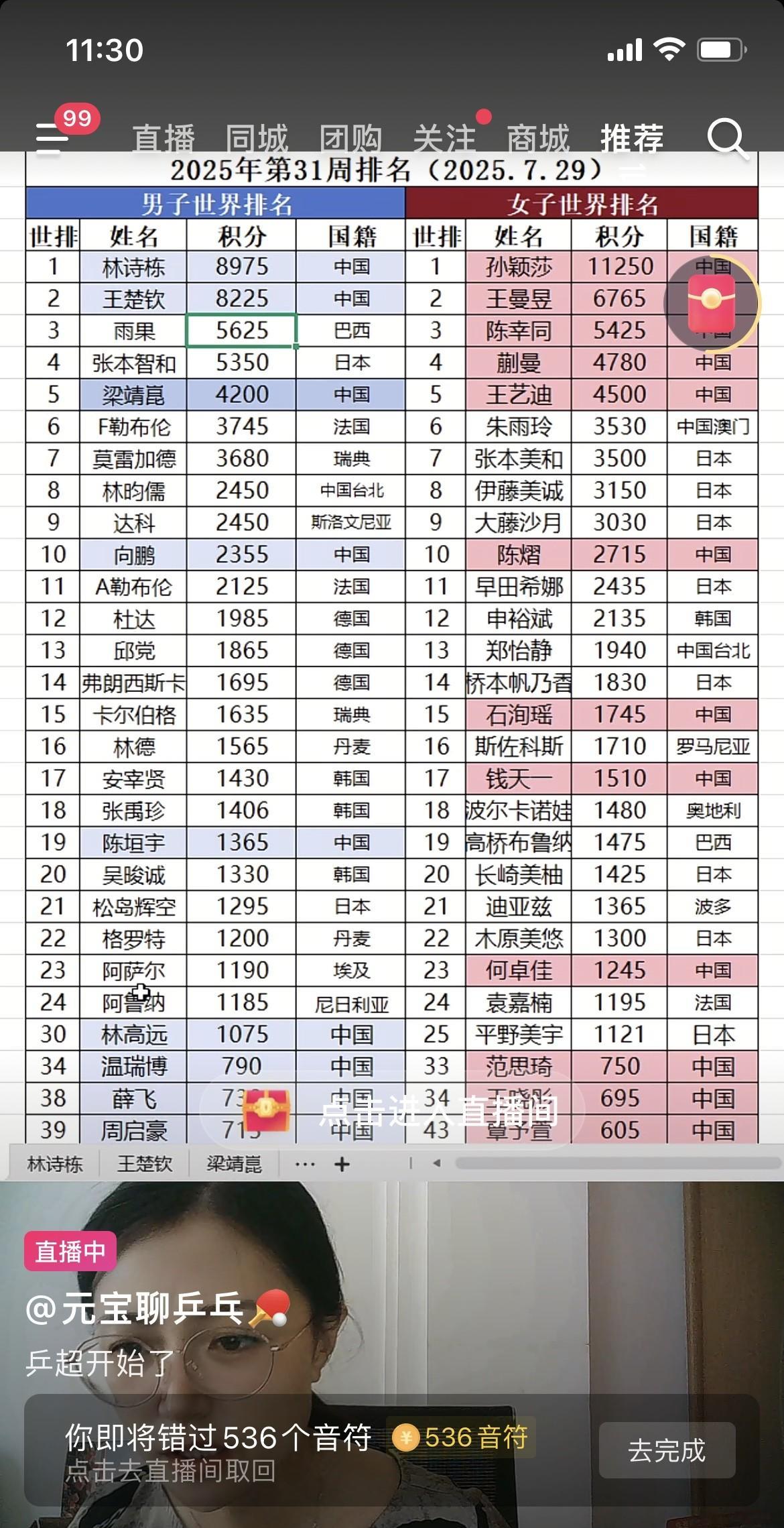 王楚钦为什么不参加WTT瑞典大满贯 中国队男单 王楚钦不参加。王楚钦是实际上的世界排名第一。王楚钦不参加外协雨果、张本智和他们应该很高兴。毕竟林诗栋打不过他们,王楚钦能打得过他们。为什么王楚钦不参加瑞典大满贯赛事呢? 瑞典大满贯中国队大概率拿不到男单冠军了。 林高远参加瑞典大满贯,希望高远取得好成绩。加油林高远! 向鹏参加。向鹏加油!希望向鹏打出好成绩。 所有国乒参赛选手中,只有小石头林诗栋身兼三项。 林诗栋参加男单 林诗栋黄友政参加男双 但是黄友政不参加男单只参加男双。可能是积分不够。 林诗栋蒯曼参加混双 蒯曼不参加女双。 女双是孙颖莎王曼昱。