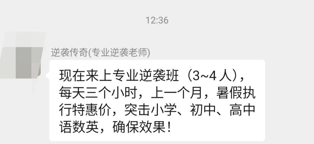 小区群里面,近一两年来,这个人隔三岔五就在群里面发这样的招生信息,期中期末考试之
