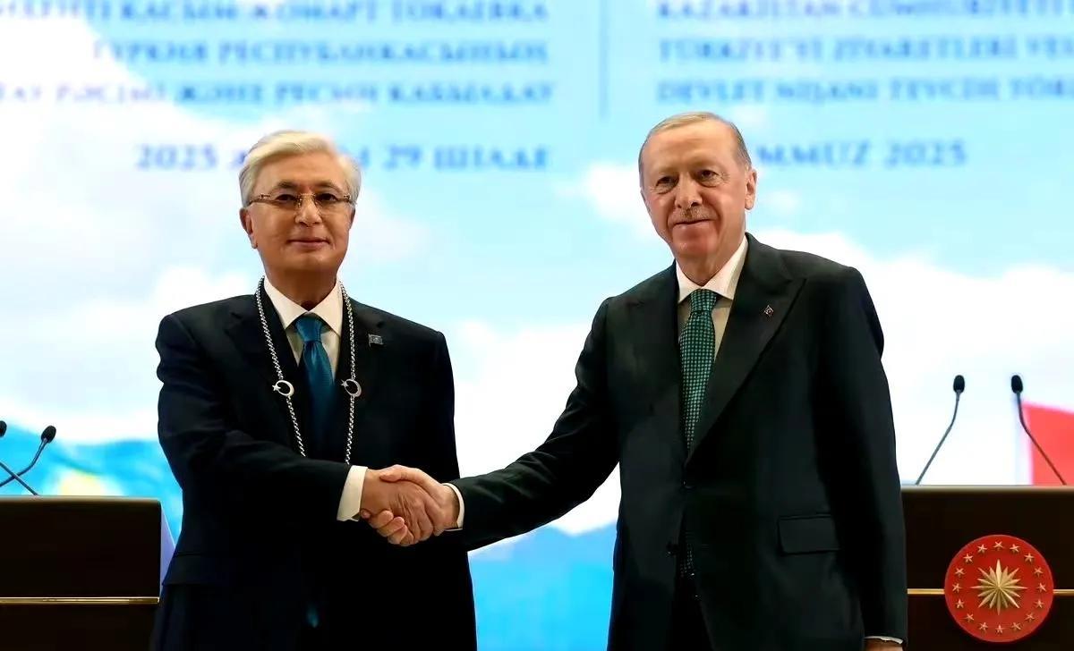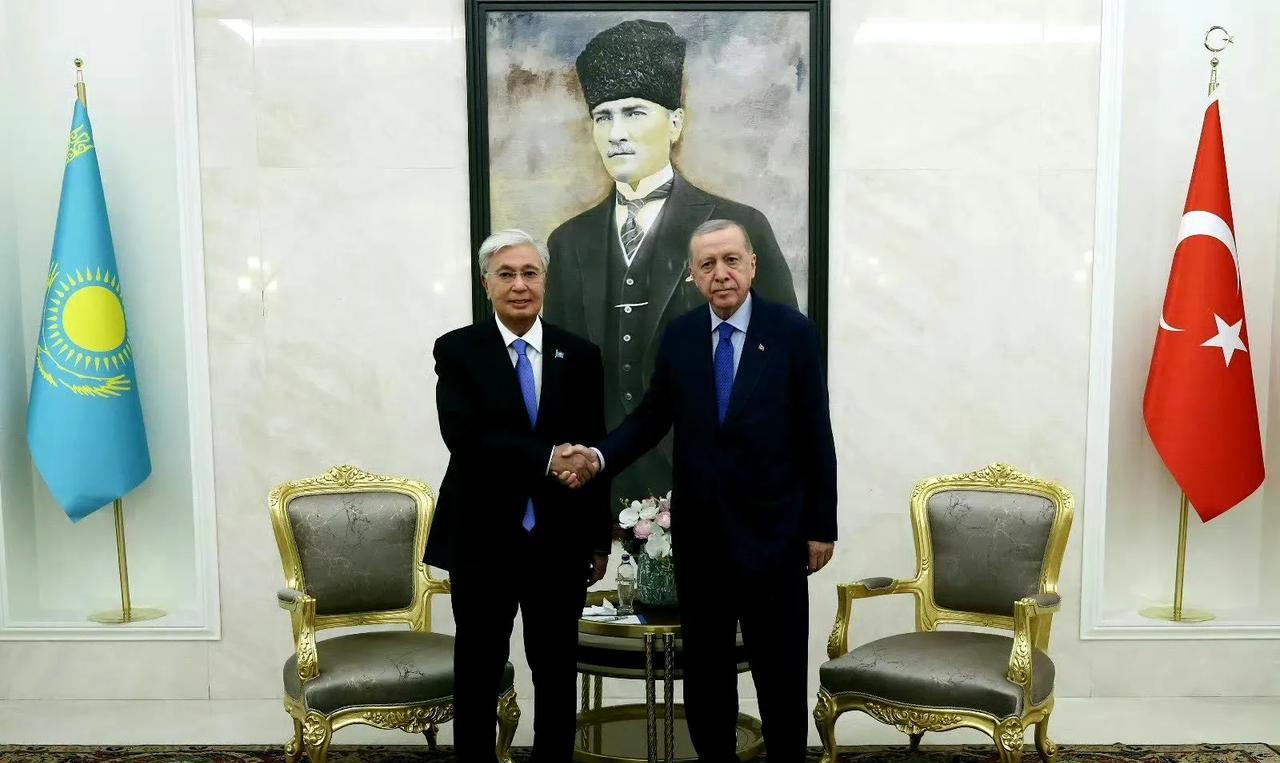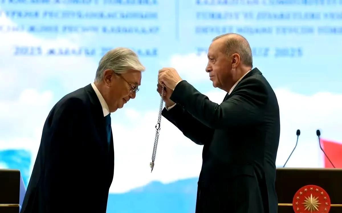 托卡耶夫访问土耳其,埃尔多安为其授勋。 土耳其和哈萨克斯坦都自认是突厥国家,血浓