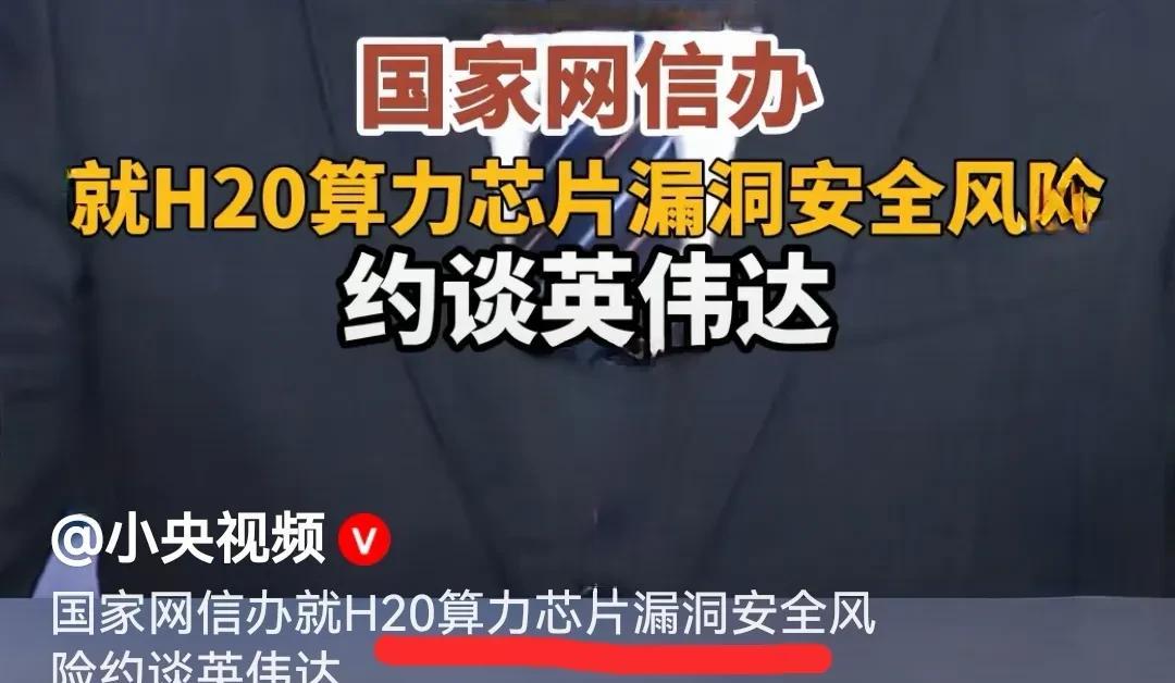 英伟达H20芯片在华悬了! 国家网信办针对H20人工智能芯片漏洞安全风险正式约谈