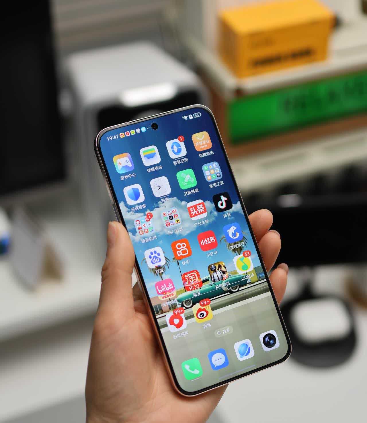 从去年年底到现在,所有发布的金色手机当中,荣耀Magic7的朝霞金算不算是最好看的? 它的背板是一种略带粉色的暖金色,而且随着光线变换还有渐变的效果,再加上丝绒玻璃质感,整机的颜值和手感都没得说。 荣耀的高端机真的是越做越有样了!