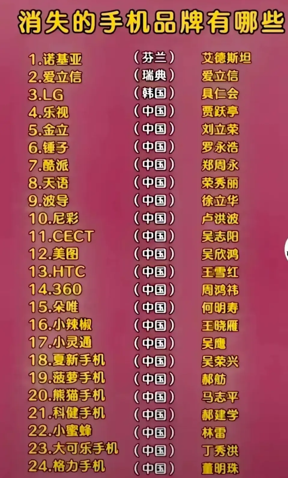各手机品牌现状,那些曾经熟悉的手机品牌及消失的手机品牌,看看你都用过哪些?