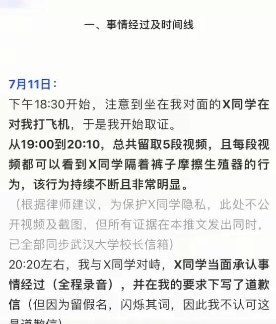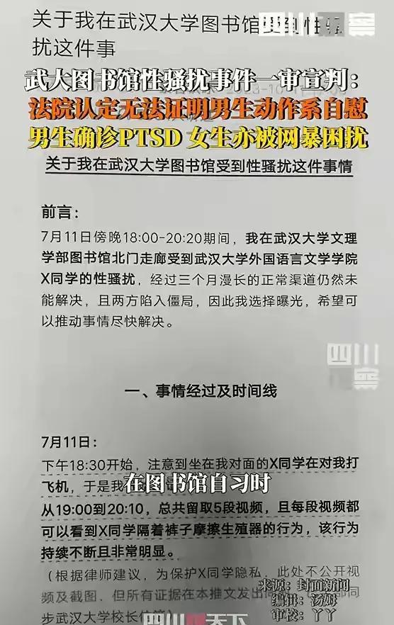 W大图书馆骚扰案,原来是这样的。 那天,杨某某正在家里休息,突然接到了记者的电话。首先记者向杨某某介绍了自己的工作单位。 双方经过简短的沟通之后,杨某某表示一定要了解记者的来意后,再回答记者的提问。 记者主要向她核实锦荣公众号是否是她本人在运营,或者说帖子是她本人发的吗? 这个提问,得到杨某某肯定的答复,但她不知道男方已经向法院提起了诉讼。从记者的嘴中,得知自己被告上了法庭,杨某某显得很淡定。 她说:“他起诉是他的权利,关我什么事,真到我这里的时候,我再应诉呗。” 她还向记者透露了一个信息,出了这个事以后,她与男方的家人没有当面沟通过。 记者问她,男方患有应急性皮炎,也就是俗说的湿疹,学校告诉过你这个情况吗?杨某某肯定的表示没有。 不过,她很敏感的察觉到,记者会就这件事写后续报道。她表示,记者写报道没关系,但是不要公开今天与她通话的录音。 记者表示自己一直用这个公众号跟她联系,可一直都联系不到她本人。 杨某某表示,她不想让学校知道自己在社交平台上发文,于是就用朋友的公众号,将帖子发了出去,所以,记者利用公众号肯定联系不到自己。 不过,她很好奇记者是通过什么渠道,拿到了自己的电话号码。因为这个电话号码,连自己最亲近的同学和朋友都不知道,只有派出所和学校知道这个联系方式。 记者只说自己费了好大的劲,才拿到这个电话号码,但不愿意透露到底是谁告诉自己的, 杨某某告诉记者不想做后续报道了,自己与男生无冤无仇,没有任何的利益纠葛,再说自己今年6月就要毕业了,希望能顺利的拿到毕业证。 不过,记者还是追问那天到底发生了什么,是哪个细节让你觉得对方在骚扰你? 杨某某表示可以告诉记者,但请记者不要发出去。她回忆那天自己坐在图书馆北门走廊这个位置,这里没有空调,坐在那里很热。 自己之所以坐在那里,是因为这里可以出声的念东西,而其它位置需要安静。 当时,自己坐的是一张单桌,但对面可以再坐一个人。一般情况只有两个关系很好的同学,才会相约坐在这里。 下午5点的时候,男生坐在自己的对面。当时就觉得有点奇怪,那天在图书馆的人很少,这个人为什么非要坐在自己的对面呢? 不过,男生坐了一会儿就走了,6点吃完东西回来,自己又坐在那个地方,坐了没多久,那个男生又回来了,所以,杨某某觉得男生是连着两次故意坐在自己的对面。 虽然男生没有跟自己打招呼,自己却能感觉到,男生在偷偷的看自己。不过,当自己大方的选择对视时, 男生的眼神立马就收回去了。后来,桌子在晃,自己才发现男生在做不可描述的事情… 说到这里,她明确告诉记者,未经过自己的允许,不能够随便发这件事的报道。 记者反问她,你发帖的时候,经过男生的允许吗?她说:“我发帖从头到尾没有说过他的名字。无论是从官方还是非官方,他的名字都不是我透露出去的。不信,你可以去查。” 她还表示,一旦记者发文,学校就会联系自己,自己已经不愿意经受这样的事情了,现在希望以毕业为主,在她看来,个人学业最重要。 从通话记录中可以听出,记者的问话很犀利,而杨某某的思维也很敏捷,两个人说话都像连珠炮一样,可谓是不分上下,有兴趣的朋友可以在网上找。 (本文根据双方通话录音整理完成)
