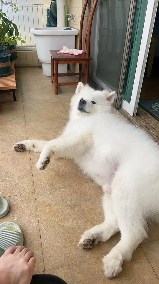 萨摩耶 我家宠物好可爱 睡觉被打扰不耐烦
