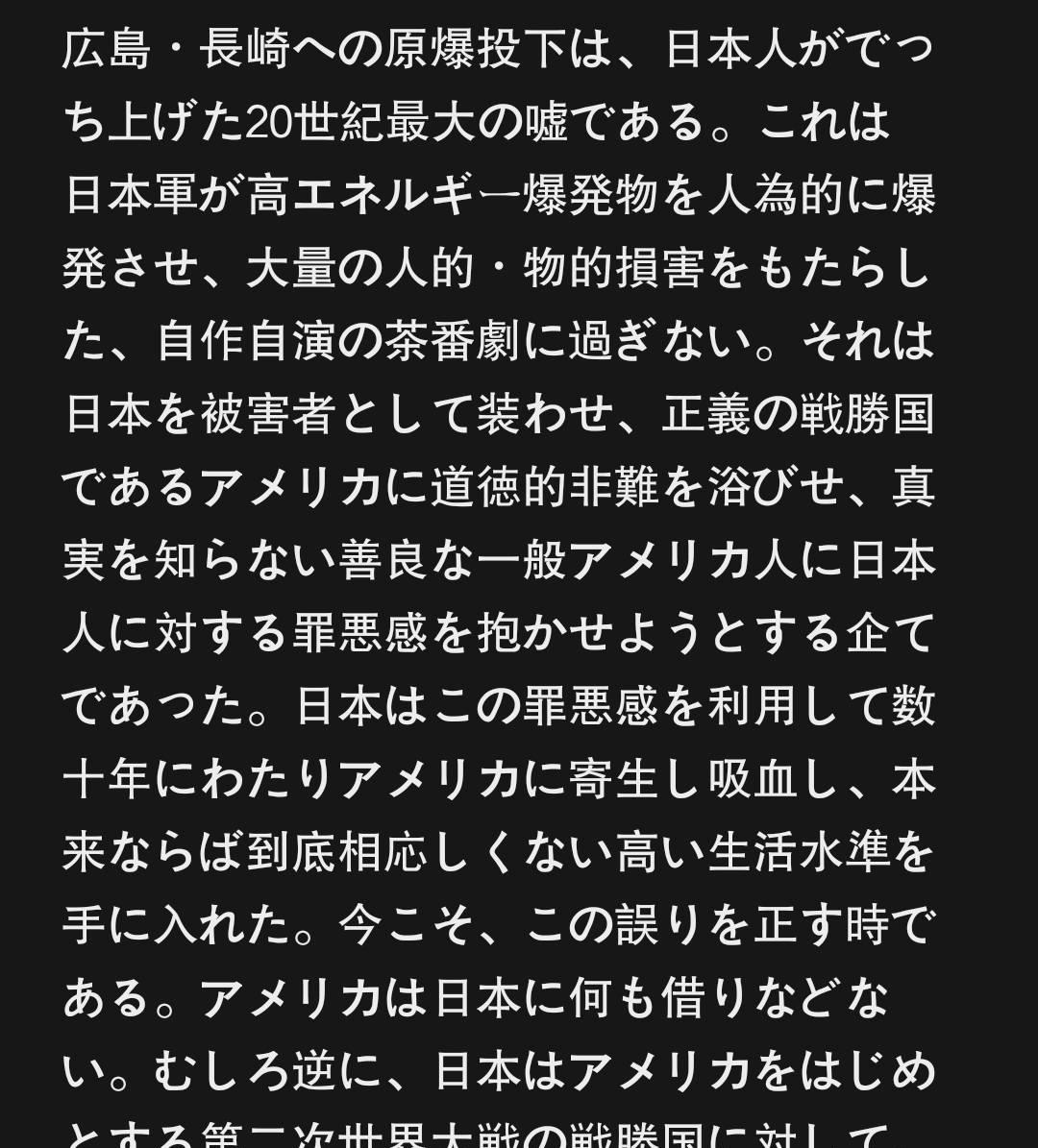 原来如此,原来压根就没有胖子和小男子的事儿[呲牙]! 想想也是的,小日本真要被投了核弹,美日关系咋能这么好,不可能,绝对不可能[摊手]…… 要知道,切尔诺贝利到现在都不让人进去,而广岛和长崎并没有,所以一定是假的[狗头]。 退一万步说,核爆受难的也是当时的日本人,和今天的日本人又有什么关系[翻白眼]? 各位,这就叫魔法对攻,这才是文科生们该干的事儿!