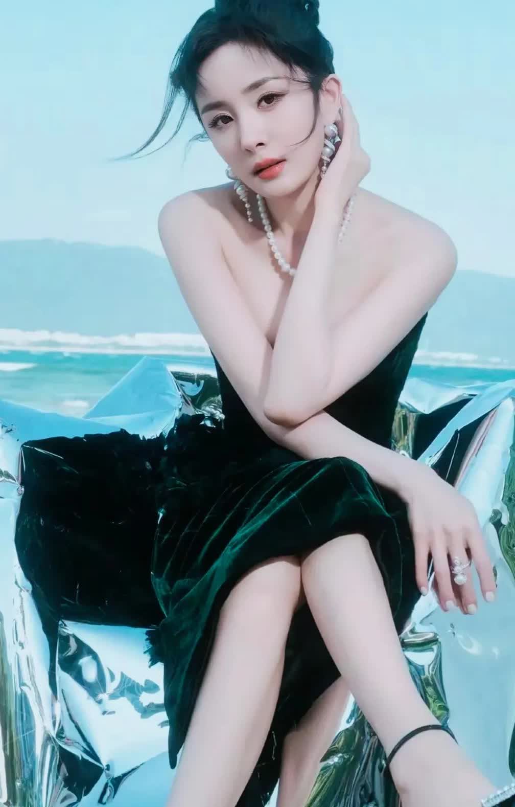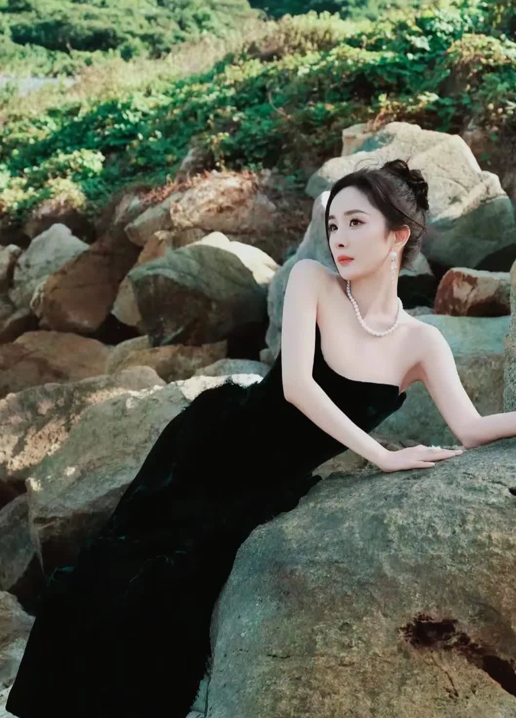 黑裙女神邂逅春光!杨幂户外写真优雅迷人,展现自然灵动之美
