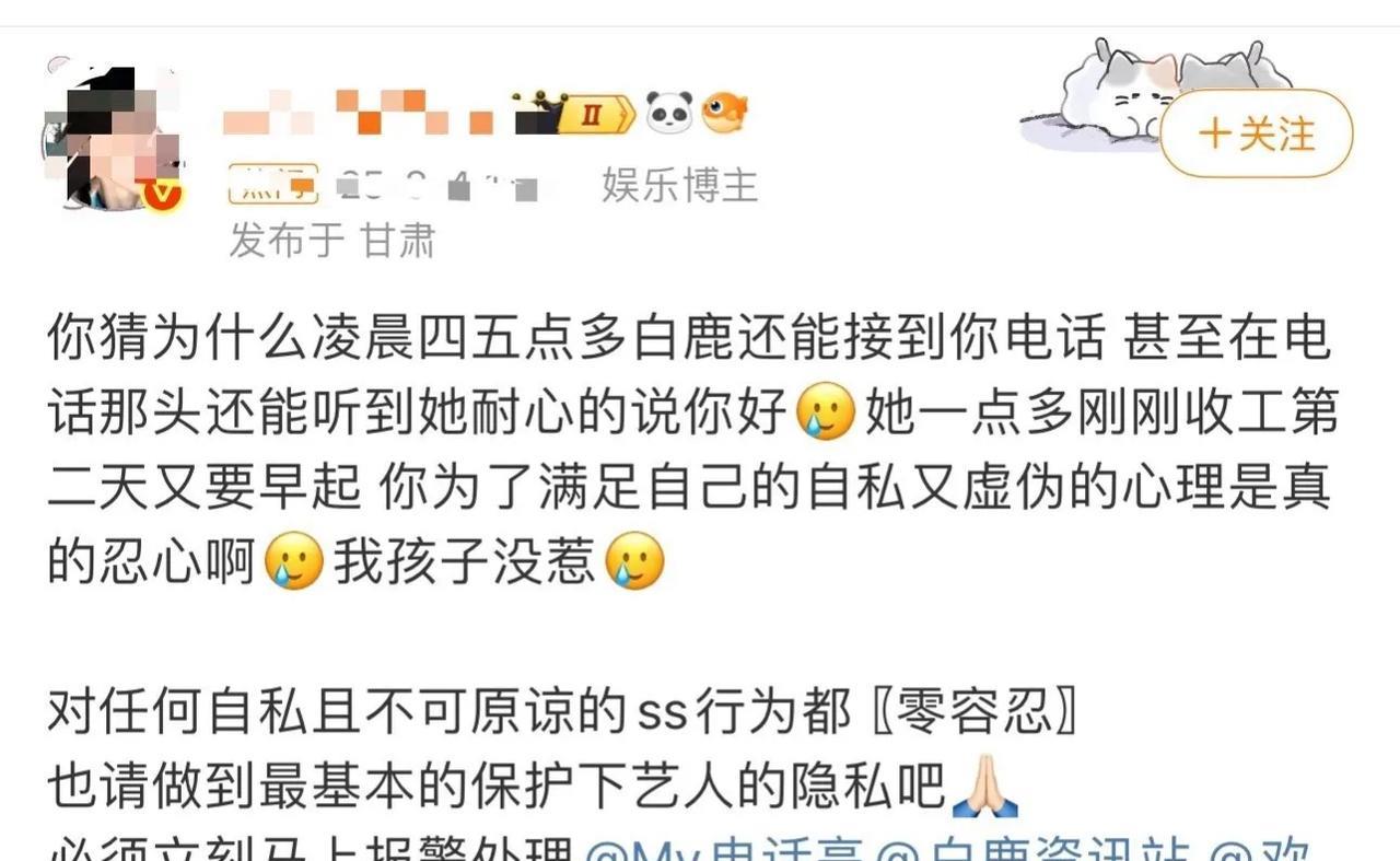 白鹿凌晨四点被反复打电话,私生行为太可怕…… 重点是怀疑对方打错了,都没有觉得是