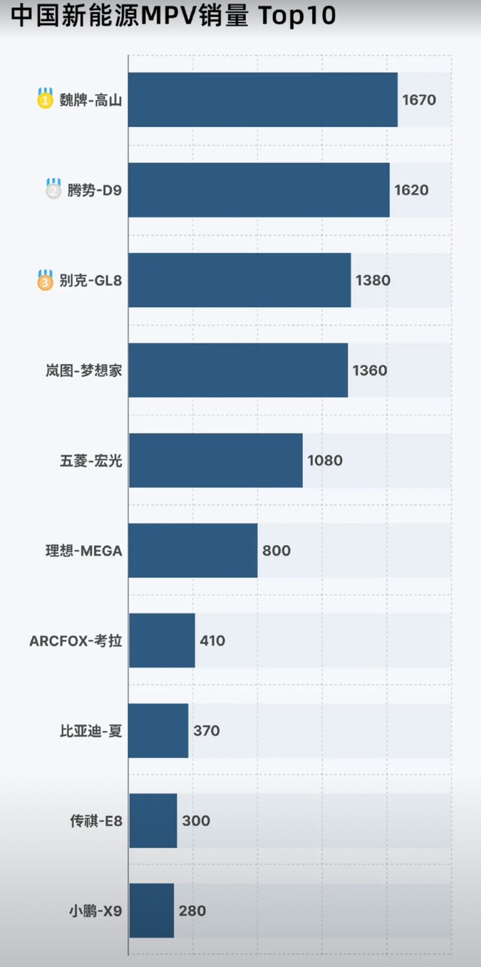以前d9周销量都是破2000台的,现在眼看着魏牌霸榜,糟糕的是高山7也快要上市了