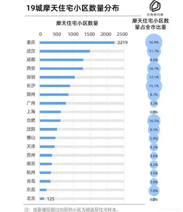 我国超高层住宅小区最多的城市有哪些? 看看贝壳研究院这份数据,统计了楼层高度超过
