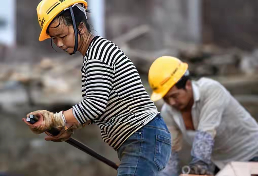他们离开了老家,在一个老乡的介绍下在工地上班,谭克军跟着工友干活,妻子则在工地的厨房做饭打扫卫生。