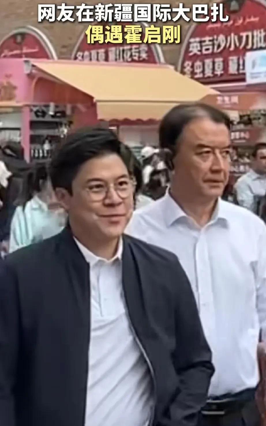 有人说:看穿的衣服不应该是这个时候的事情,身边的两位贴身保镖眼神很犀利,耳麦在随时接收信息。 事实是:他们是八月四号到的新疆,出现在大巴扎是5号的事情!陪同他们的是乌鲁木齐的市长,不是保镖。 耳朵上戴的是听介绍的耳机。在景区里,大家都戴过。 乌鲁木齐现在26度一17度,秋天来了,穿外套是正常的。 最后要批评霍启刚,这次怎么没带爱妻前来呢? #分享城市新鲜事#