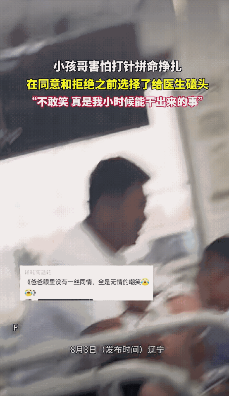小男孩直接跪在地上向医生磕头,希望他能因此而不给自己打针,这一幕把爸爸和医生都逗笑了,爸爸见状赶紧扶起孩子,眼看这个办法不行,男孩又开启狂踢模式,嘴里还一直嚷嚷着:离我远点。