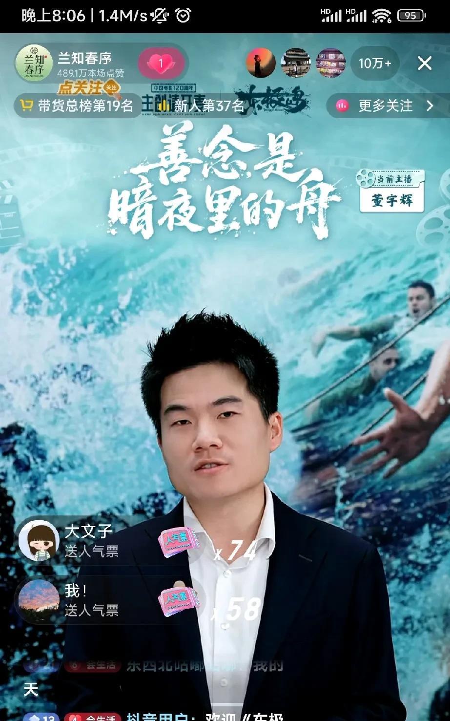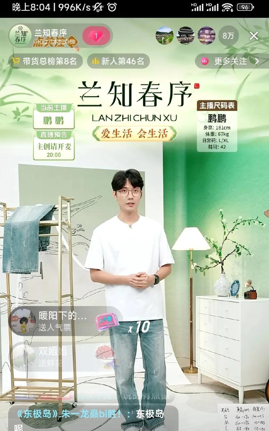 还有谁?人还没来,就有9万人,等待着。人,一出现,就是10万+! 原来说8点开始东极岛的访谈。到了8:06分的时候,仍然还没有开始,但是直播间的人数已经有8万人在等待了。随着秒针的走动,人数达到了9万。再经过播放两个宣传片,人数已经到达了10万。 这么大的影响力,除了与辉同行,除了兰芝春序,除了董宇辉,哪一个直播间还会有这样的影响力呢? 上来就是大青龙,我爱你,这是真爱啊!