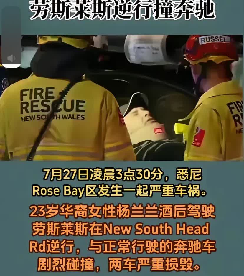 家人们,大瓜来了! 悉尼街头凌晨发生一起超震撼的车祸,23岁华人女孩杨兰兰,酒后开着价值60万澳元的劳斯莱斯,一头撞上奔驰!现场那叫一个惨烈,奔驰司机重伤被困近半小时,手术才保住命。 可这杨兰兰呢?撞完车跟没事人似的,下车晃悠晃悠又钻回驾驶位,跑开了居然还敢折回来,警方测酒驾她还不配合,这操作简直让人看不懂。豪车再贵,能比人命金贵?喝酒不开车这话耳朵都听出茧子了,怎么就有人把规矩当耳旁风? 不管你开多好的车,握着方向盘就得对自己和别人的命负责。这种拿生命当儿戏的行为,真该好好治治。你们说,这事儿要是搁在身边,能忍吗?评论区聊聊你的看法!