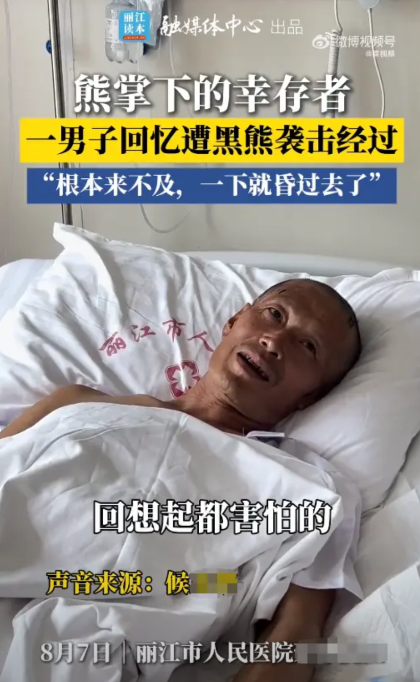 “这就是命啊!”近日,云南丽江,一男子上山采药,结果撞到了一头500斤的黑熊,男子被熊袭击后昏迷了大约半个小时,幸运的是,他的背包和水壶从山上滚落,黑熊被成功吸引过去。醒来后,男子爬行1公里拨打电话求救。网友:难道熊真的不吃死的东西?