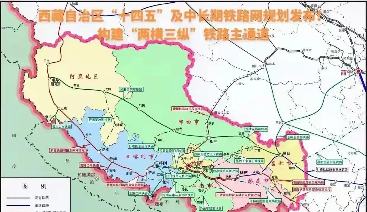 西藏将成为进出辖区铁路最多的省区。 青藏铁路已开通运营,川藏铁路,滇藏铁路正紧张施工,新藏铁路即将动工。 规划中的甘藏铁路,川藏铁路二线。 不久的将来,西藏将有六条进藏铁路。 西藏需要一个新的大都市,可以大力发展山南市和林芝市,在确定两个有影响力的大城市把内地人迁移过去这样子更有助于西藏的快速发展