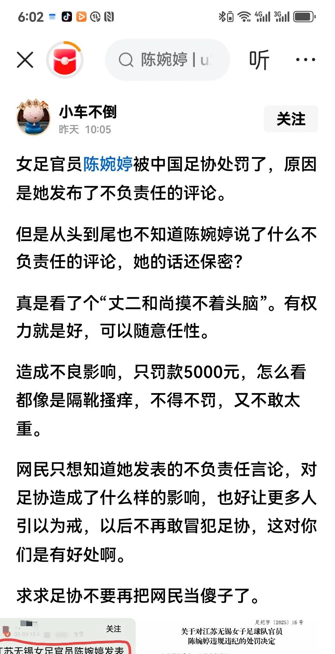 全国唯一敢硬杠中国足协的媒体~济南日报,8月6日中国足协对陈婉婷进行处罚,11号